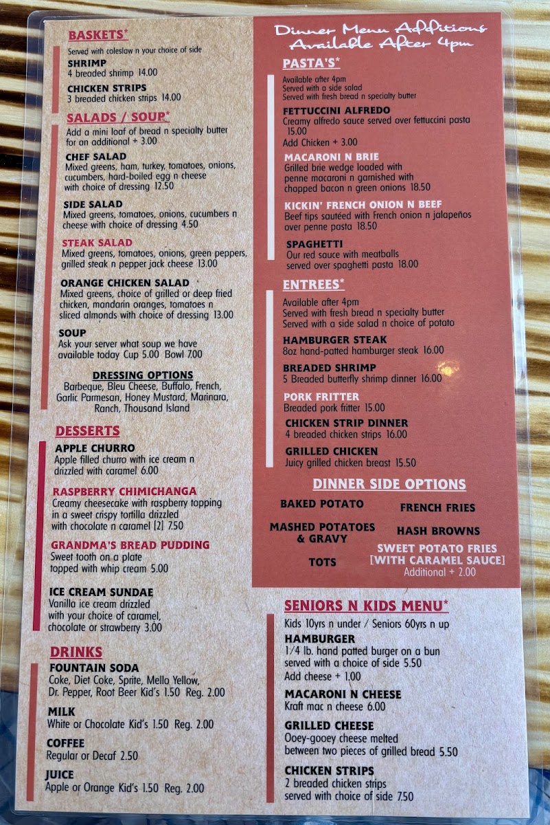 Seniors N Kids Menu
